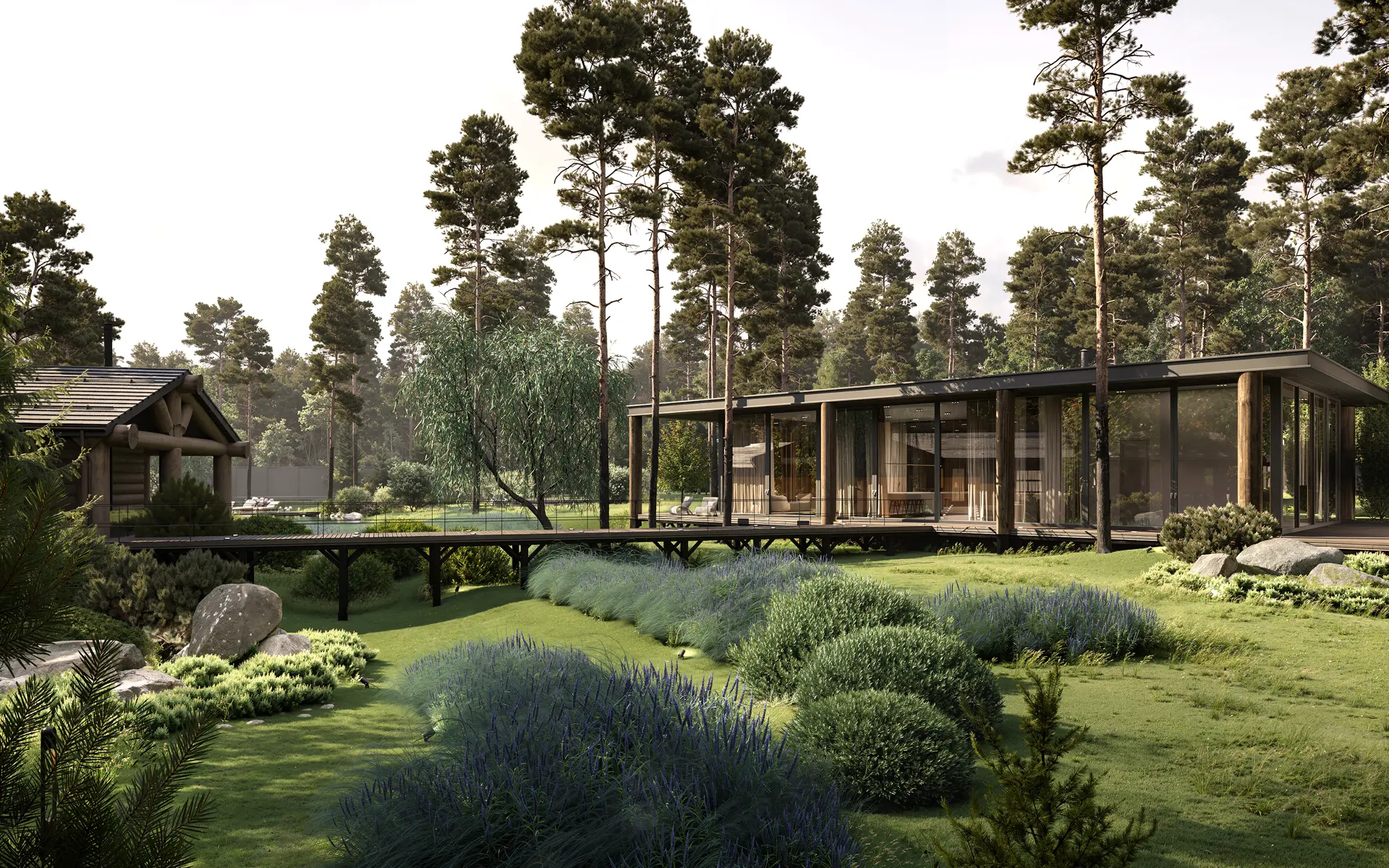 Проектирование резиденций — это вершина индивидуального подхода в загородном строительстве. Часто резиденция ассоциируется с представительским уровнем, высоким статусом, репутацией, и даже определённой миссией. В резиденциях реализуются самые взыскательные запросы: свой спа-комплекс, баня, зимний сад, вертолетная площадка, собственный парк или озеро. Дизайн резиденции всегда интегрирован с ландшафтом, характеризуется абсолютной приватностью, инженерной автономией, системой безопасности и эксклюзивными дизайнерскими решениями.