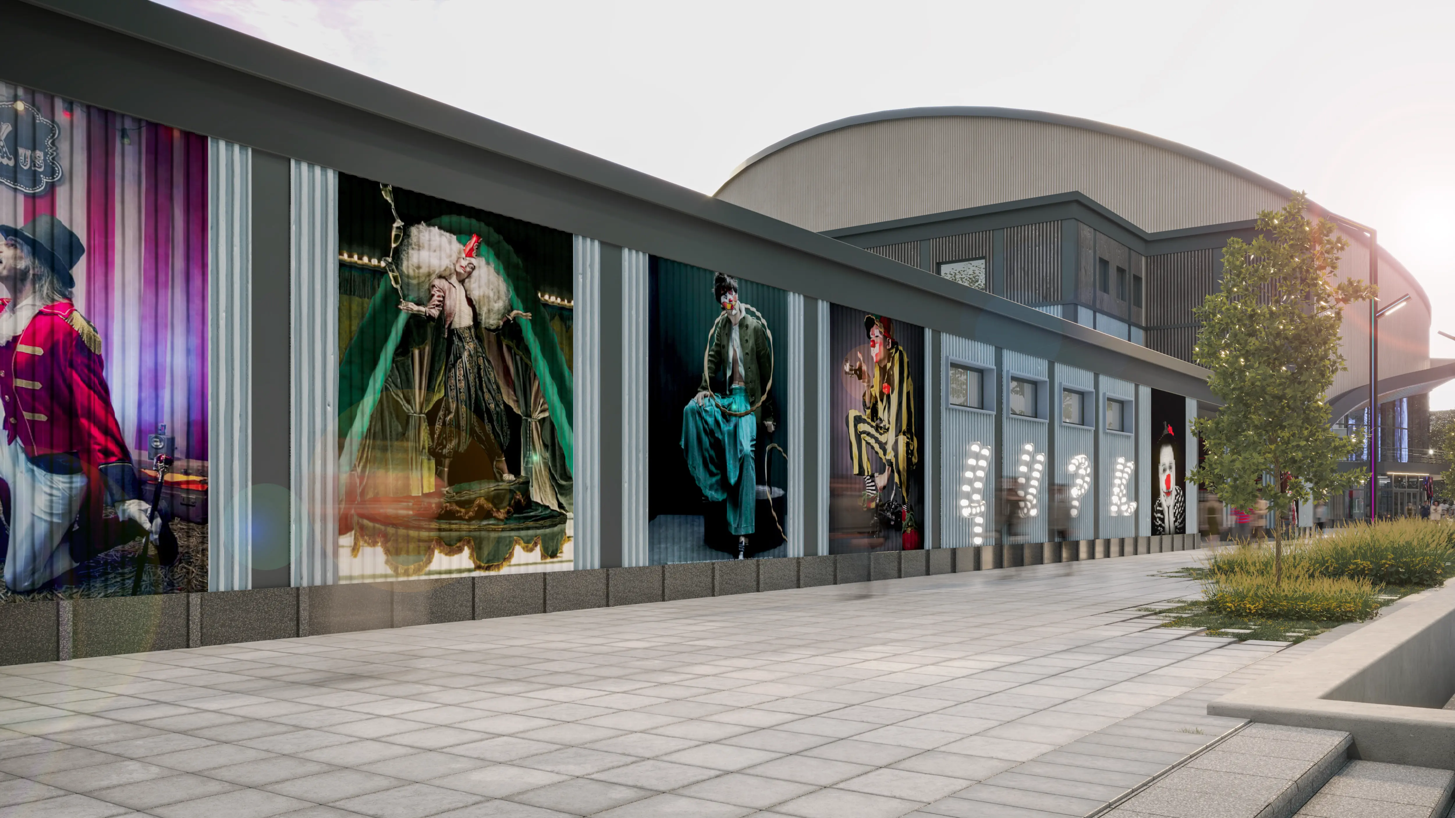 Территория вокруг цирка стала более живой и экологичной: мы интегрировали зелёные композиции, создали эко-парковку, добавили яркие МАФы из переработанного пластика и продуманную вечернюю подсветку.